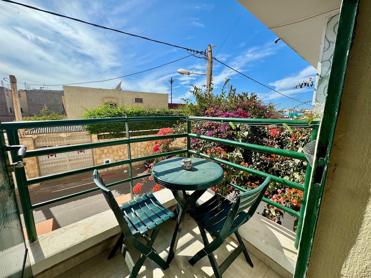 Cozy & Unique Apartment (60 m²). located in a very quiet area, in a gated community*. less than 5 minutes from Agadir Beach Marina, and 10 minutes from the famous Taghazout seaside resorts. The nearest beach is 600 m from the Apartment, accessible on foot or by car. The apartment offers easy self checkin with a smart lock This appartement is ideal to spend your holidays at any season of the year in order to discover the sunny city of Agadir and coastlines, also suitable for business stays.