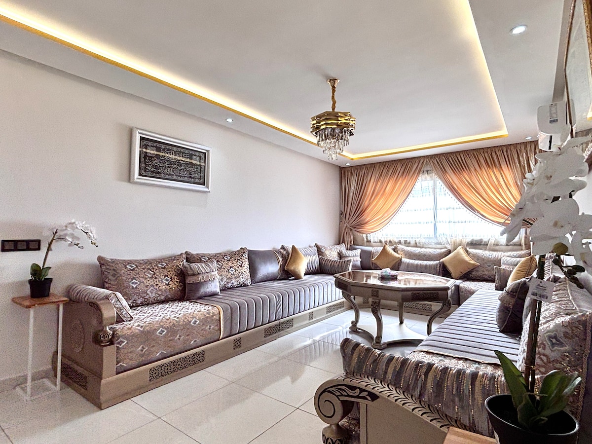 ✨ Newly renovated 3BR/2BA in Agadir’s exclusive gated Marina Complex. Perfect for families or friends seeking a peaceful, stylish stay. Spacious, central, and walkable — with full kitchen, AC in every room, Smart TV, and rain showers. 🚫 Not suitable for groups of single men looking to party 📄 Moroccan couples must provide a valid marriage certificate.
