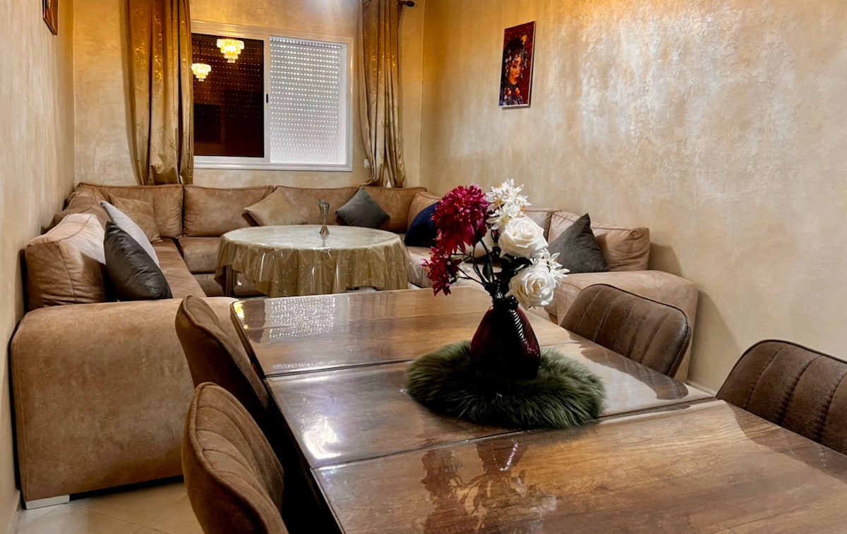 Cozy & Unique Apartment (60 m²). located in a very quiet area, in a gated community*. less than 5 minutes from Agadir Beach Marina, and 10 minutes from the famous Taghazout seaside resorts. The nearest beach is 600 m from the Apartment, accessible on foot or by car. The apartment offers easy self checkin with a smart lock This appartement is ideal to spend your holidays at any season of the year in order to discover the sunny city of Agadir and coastlines, also suitable for business stays.