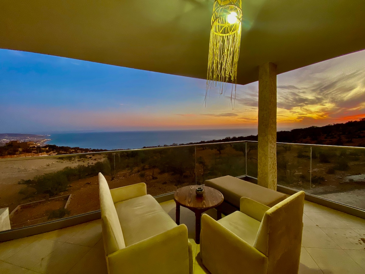 🏆⚽️ Africa Cup 2025, let’s go !!🏅⚽️🏆 🌴 🏄♂️ Venez séjourner dans un appartement neuf & moderne tout équipé avec vue 180° sur l'océan. Toutes les fenêtres et terrasses font face à la mer, seuls 500m séparent l'appartement de l'océan. L'appartement est situé à 8 min en voiture d'Agadir et à 15 min en voiture de Taghazout. Ce n'est pas seulement un emplacement idéal pour les amateurs de surf et de plage mais aussi pour ceux qui souhaitent rester à proximité des commodités et des restaurants.