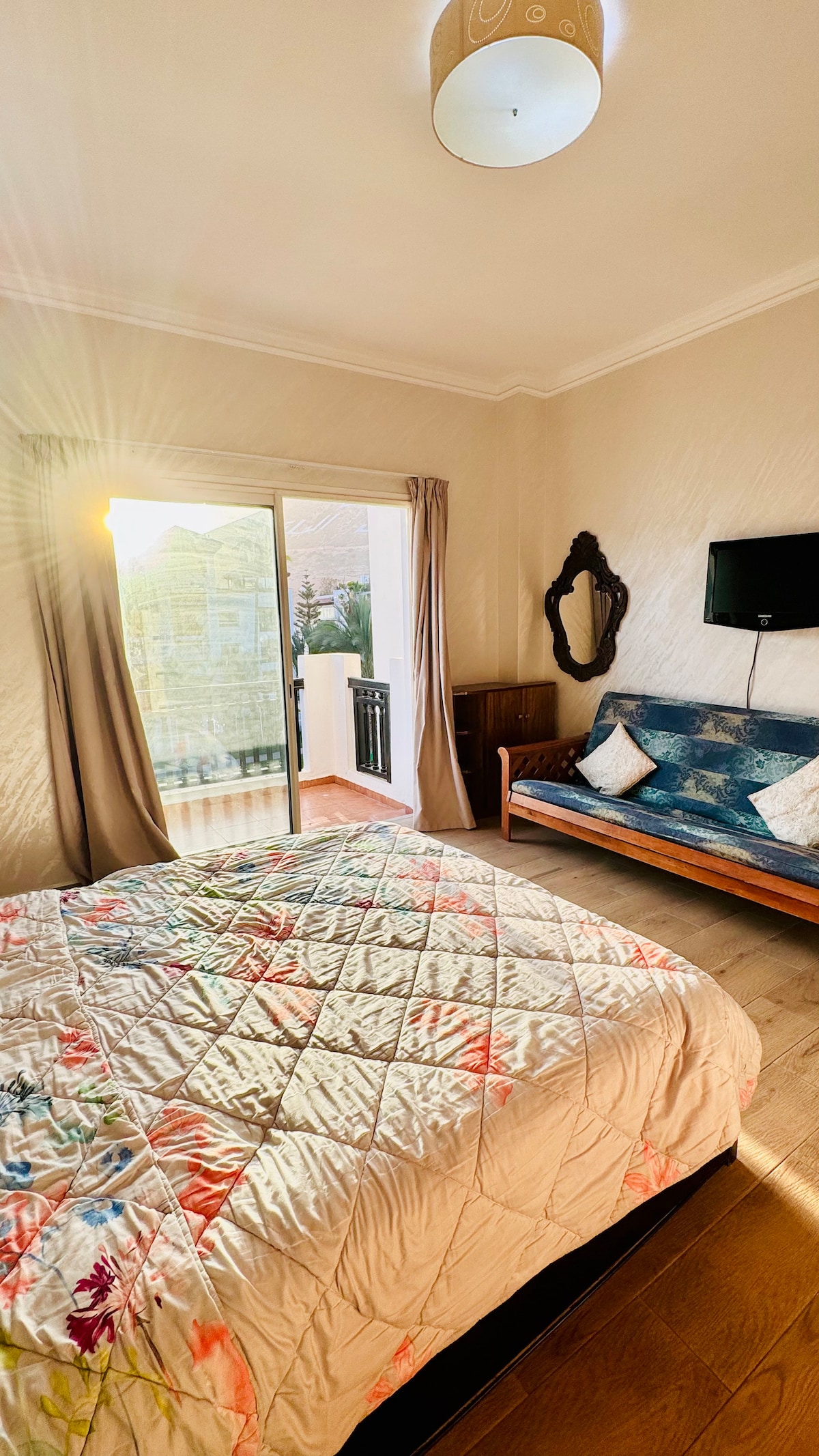Sunny 1st-floor apartment in the heart of Agadir! Steps from cafés, shops & just 10 min walk to the beach. Relax in the cozy living area with a 65 inch TV, enjoy fast WiFi, and a fully equipped kitchen. Airport transportation available. ⚠️ Only registered guests; no outside visitors. Perfect for couples, friends, or business travellers!