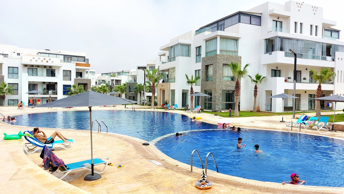 🌴 Appartement Moderne à 300m de la Plage • Piscine • Terrasse • Netflix • Clim • WiFi • Salle de sport Profitez d’un séjour relaxant dans cet appartement moderne, confortable et entièrement équipé, situé à seulement 300 mètres de la plage 🌊 Idéal pour les couples, familles ou amis à la recherche de confort, de tranquillité et d’un excellent emplacement.