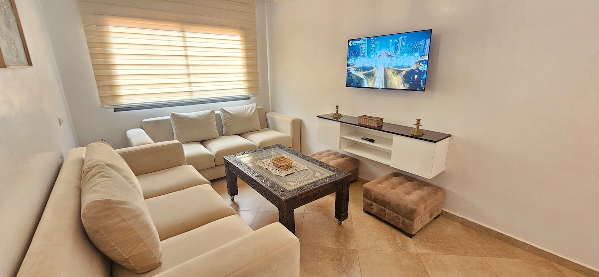 Live the Agadir Luxury Experience. This elegant retreat, just steps from the beach , blends comfort, design, and prestige. Enjoy a fully equipped kitchen, fiber Wi-Fi, workspace, A/C & heating, pool, two private terraces, parking & security. Steps from top restaurants (McDonalds , pizza Hut, El Bahja Sushi, Bayt Al Mandi, Vitamix open till 4 AM) and lounges. On request: driver-guide, private chef, maid, airport transfer, and any other service in Agadir.