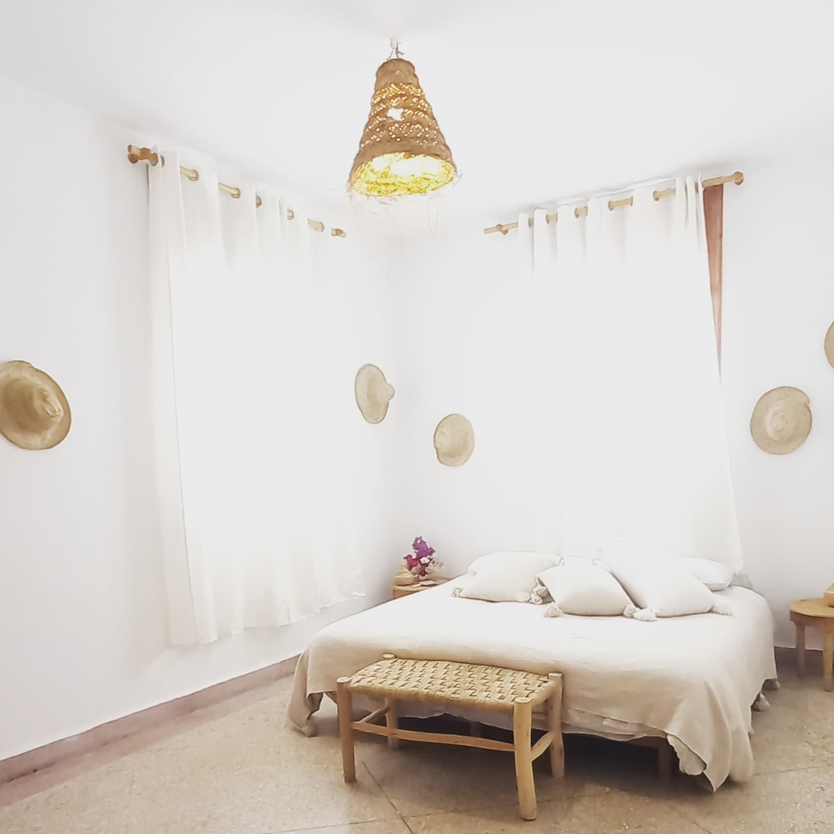Maison typique marocaine de 120m² avec tout confort sur R+1. Se situant sur les hauteurs calmes de Tamraght, elle dispose d'un agréable espace vert au RDC et d'une grande terrasse sympa à l'étage. Vous disposerez d'un accès (R+2) où vous détendre avec vue sur l'ocean. Dépaysement total entre mer et montagne. Région propice à beaucoup d'activités comme le surf, le quad, la plage d'Imouran à 15min à pied, des excursions dans la vallée du paradis, les cascades d'Imouzzer, etc...