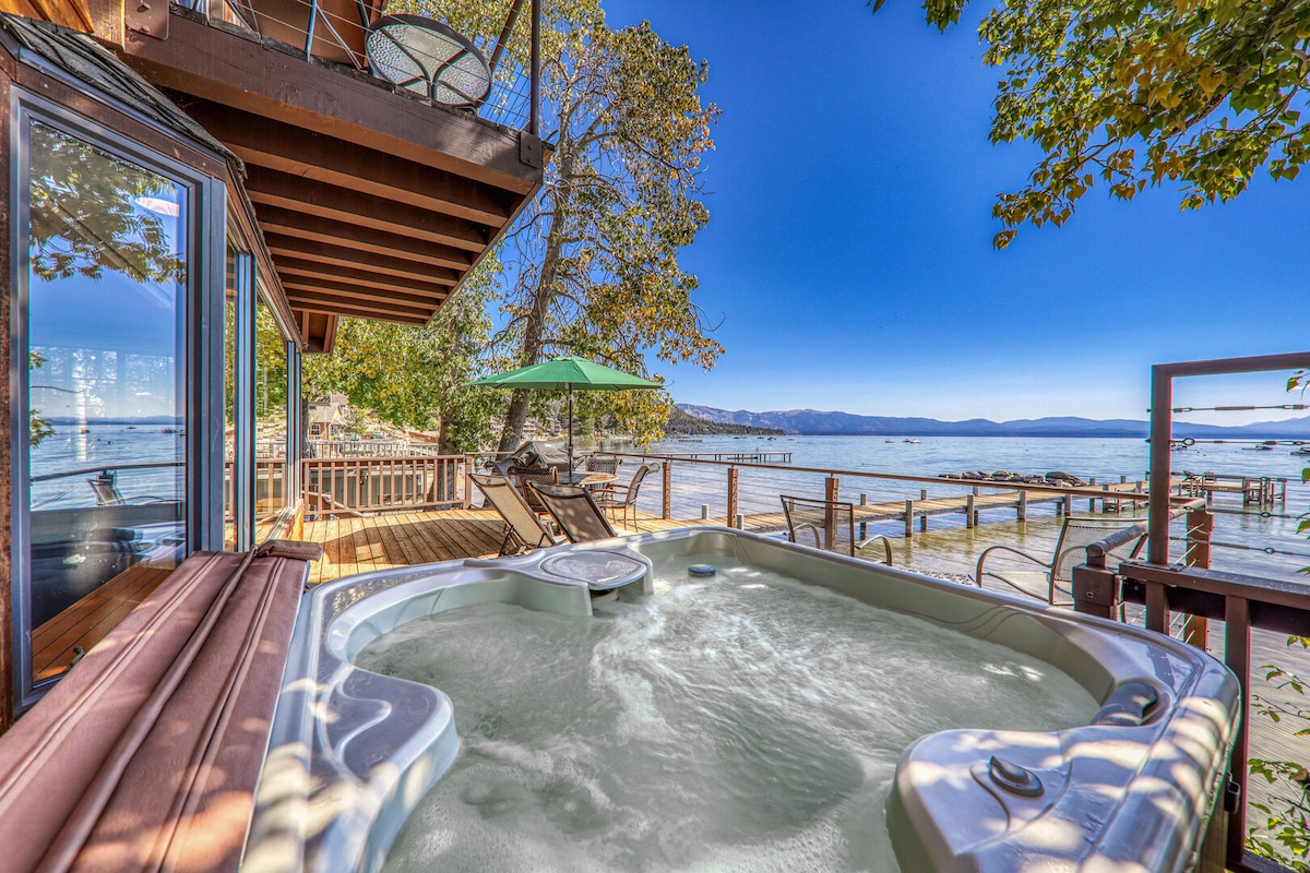 Our family's quaint A-frame cabin from the 1950s overlooks the lake with an unobstructed view from all living areas. There is a hot tub off the back deck overlooking the lake. The cabin is walking distance to both Kings Beach (0.9 miles) and Speedboat Beach (0.4 miles). The Crystal Bay stateline casinos and restaurants are also walking distance (0.5 miles). Stateline Lookout hiking trail is across the street. Northstar, Diamond Peak and Mount Rose resorts are 10-15 minutes away by car.