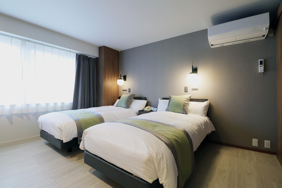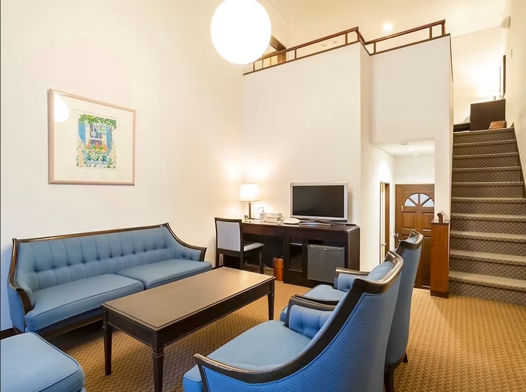 メゾネットタイプ 76m² 定員5名 ベットルームの他、和室もある広々空間 1階にゆったりとしたリビング、2階にベットルームと和室を配置したメゾネットタイプのお部屋です。6名様まで宿泊可能な広々メゾネットルーム ・客室設備 テレビ/冷蔵庫/冷暖房/ベット/ライティングデスク/風呂/クローゼット(ハンガー)/トイレ/無線LAN/加湿機能付空気清浄機(プラズマクラスター)/ソファー ・客室装備品 電話/ドライヤー/電気ポット/グラスセット/ハンガー/殺虫剤/懐中電灯 ・アメニティ 歯磨きセット/ミキモトコスメのシャンプー、コンディショナー、ボディソープ /資生堂泡ふるエコソープ /コットン綿棒セット/ヘアーネット/髭剃り/バスタオル/フェイスタオル /お茶セット(日本茶、紅茶、ハーブティー)/レターセット/歯磨きセット/ハンドタオル/ランドリーバッグ/サニタリーバッグ/浴衣