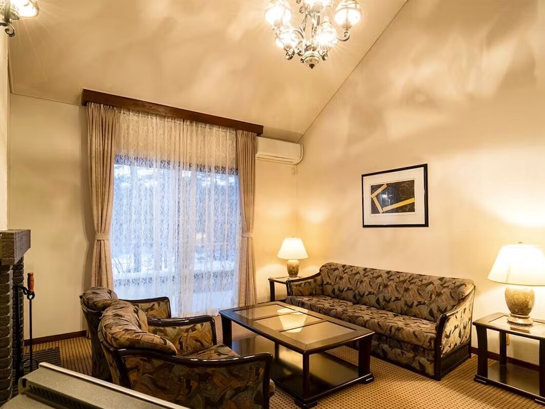 メゾネットタイプ 47m² 定員3名 開放的な空間で寛げる、1日2組限定の部屋。 1階にゆったりとしたリビング、2階にベットルームを配置したメゾネットタイプのお部屋です。暖炉を配置した室内は、リゾートの雰囲気たっぷりのスイートルームです。 ・客室設備 テレビ/冷蔵庫/冷暖房/ベット/ライティングデスク/風呂/クローゼット(ハンガー)/トイレ/無線LAN/加湿機能付空気清浄機(プラズマクラスター)/ソファー ・客室装備品 電話/ドライヤー/電気ポット/グラスセット/ハンガー/殺虫剤/懐中電灯 ・アメニティ 歯磨きセット/ミキモトコスメのシャンプー、コンディショナー、ボディソープ /資生堂泡ふるエコソープ /コットン綿棒セット/ヘアーネット/髭剃り/バスタオル/フェイスタオル /お茶セット(日本茶、紅茶、ハーブティー)/レターセット/歯磨きセット/ハンドタオル/ランドリーバッグ/サニタリーバッグ/浴衣