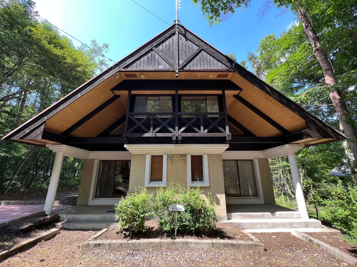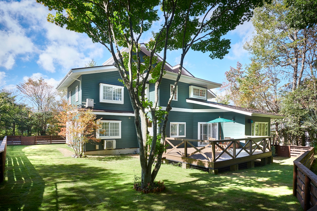 A villa surrounded by forests, 'HIBIKI Karuizawa' ☆ During the winter season, please ensure that your car is equipped with snow tires for safe driving.☆ - 15 minutes drive from Karuizawa snow park. -30 minutes drive from Karuizawa Station -20 minutes drive to Hoshino Onsen hot spring/HARUNIRE Terrace -30 minutes drive to Kusatsu Onsen hot springs The wood deck has a roof, so you can enjoy BBQ even on rainy days. Within walking distance, there are tennis courts and a short golf course.