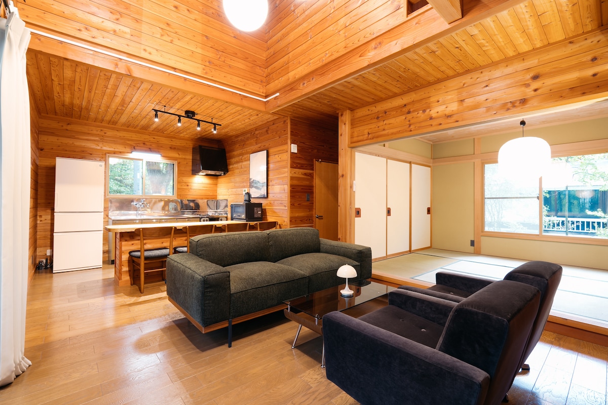 The Guest House Japan Asama was produced by the team used to work for a well known airline marketing team. The main concepts of the stay are "nature", "specious" and "hospitality". Guests can enjoy natural private onsens in the large size villa located in the national park. The private villa has 2 floors and each floor has over 120 square meters. The highlights of the villa are stone bath at inside of the villa and cypress bath at outside. Enjoy our natural onsen at both inside and outside!