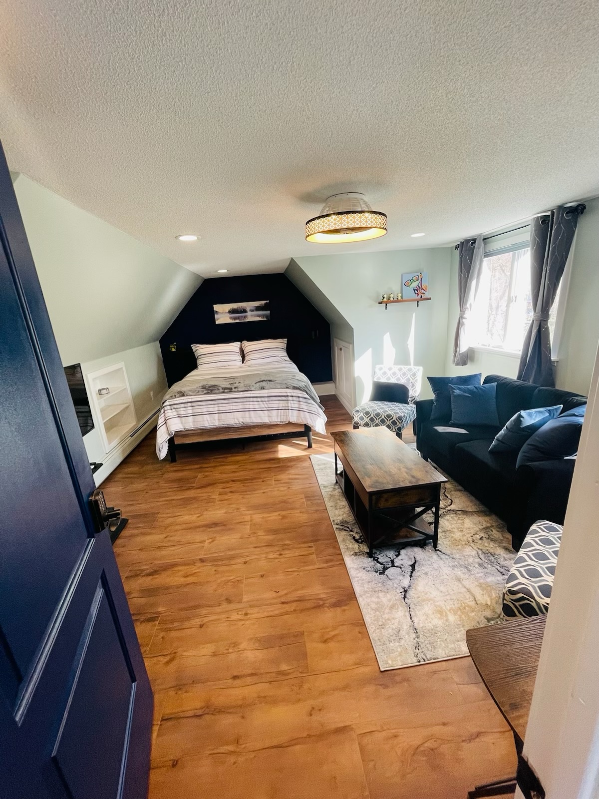 Welcome to the FROG Suite apartment, the prefect place in a comfy private space. Be it for work, pleasure, travel or leisure, this alluring updated space is located upstairs over the garage in a quiet residential neighborhood and includes a private keyless entry door lock. Apartment is located upstairs over the garage and is attached to the house.