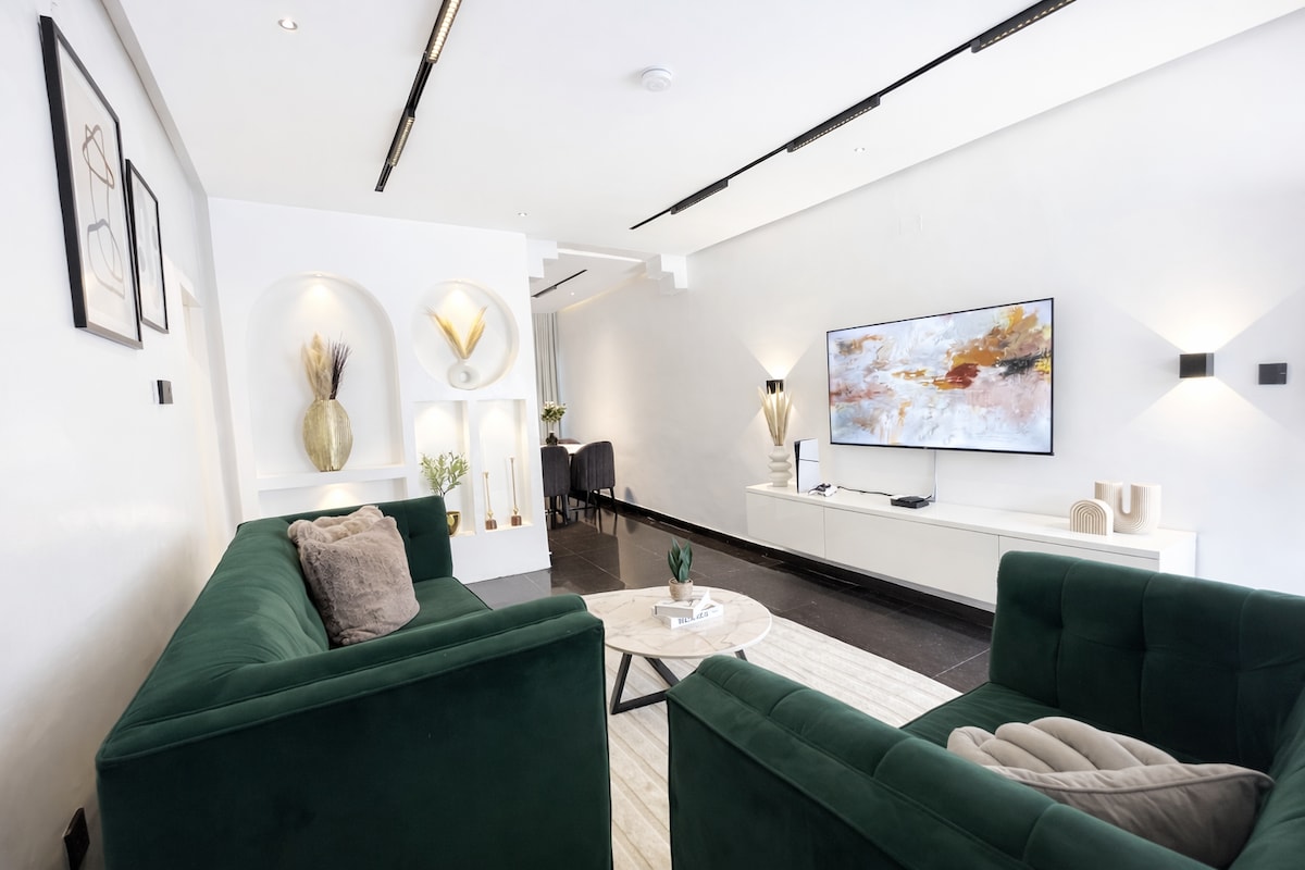 "Welcome to your luxurious home away from home! Step into our stunning 3-bedroom apartment, adorned with sophisticated furnishings that blend comfort and style seamlessly. Our well-equipped kitchen and bathroom ensure convenience and relaxation throughout your stay. Whether you're here for business or leisure, indulge in the ultimate comfort and enjoy the perfect balance of elegance and practicality. Book now for an unforgettable experience!"