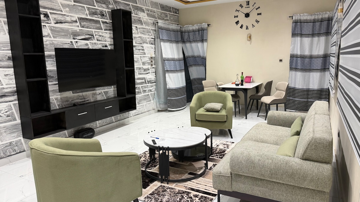 Profitez d'un logement élégant et central situé au cœur de la ville de cotonou. à 10 minutes de la place de l'amazone, 15 minutes de l'aéroport. les banques se trouve à 2 minutes, des supermarché à 5 minutes. l'endroit idéal pour passé un excellent séjour il est à noté que l'électricité est à la charge du client. wifi, eau chaud, Netflix disponible à très vite