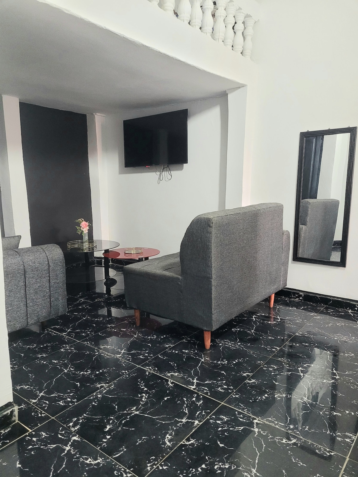 Oubliez vos soucis dans ce logement spacieux et serein. Cet appartement de deux pièces est composé de deux climatiseurs fonctionnels dans chaque pièces, d’une salle de bain, d’un balcon, d’une cuisine super équipée. Un cadre paisible, calme et sécurisé pour vous permettre de passer un agréable séjour (cours ou longs) et surtout à prix et tarifs abordables. Nous vous y attendons.