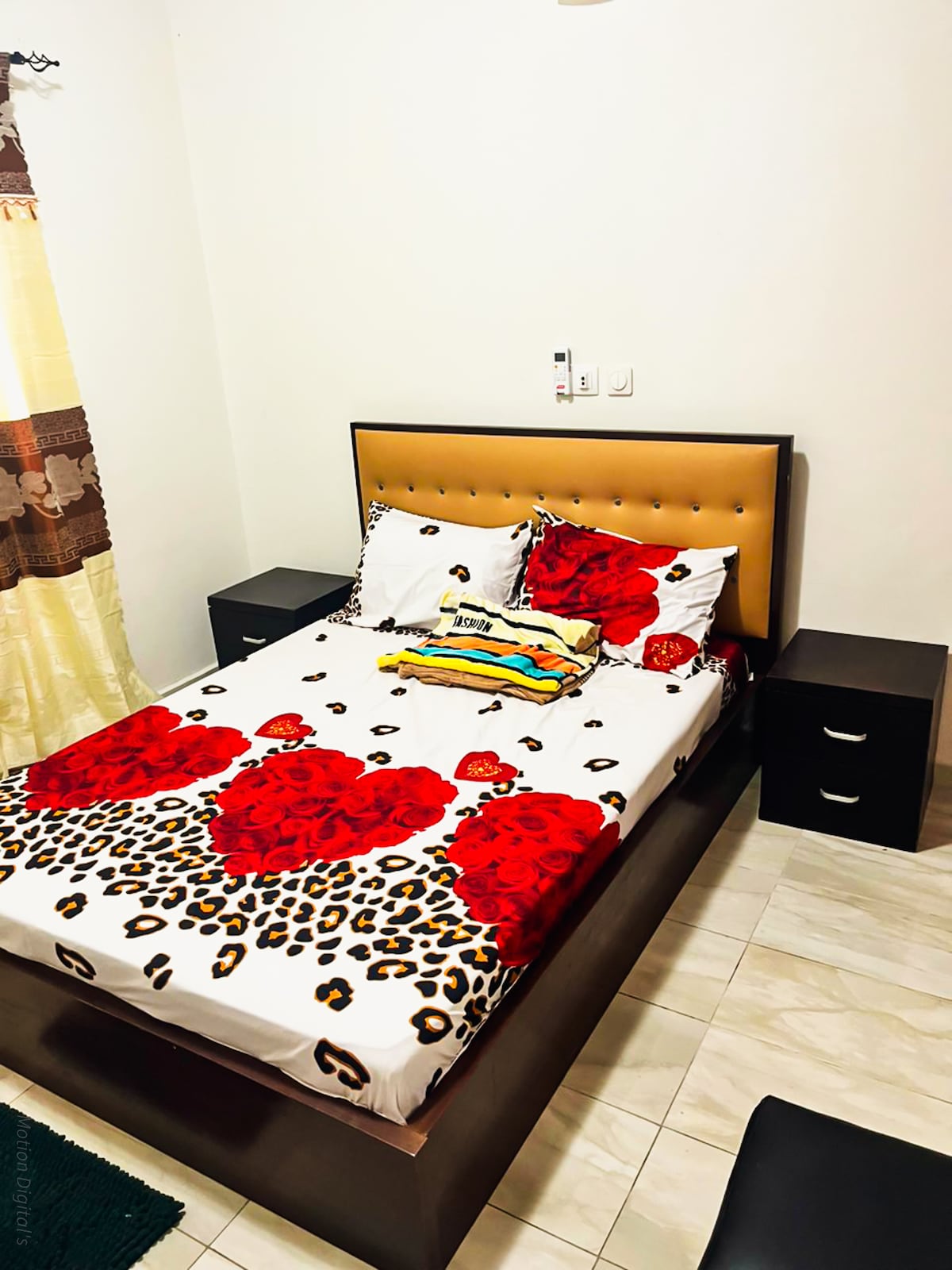 Oubliez vos soucis dans ce logement spacieux et serein. Cet appartement de deux pièces est composé de deux climatiseurs fonctionnels dans chaque pièces, d’une salle de bain, d’un balcon, d’une cuisine super équipée. Un cadre paisible, calme et sécurisé pour vous permettre de passer un agréable séjour (cours ou longs) et surtout à prix et tarifs abordables. Nous vous y attendons.