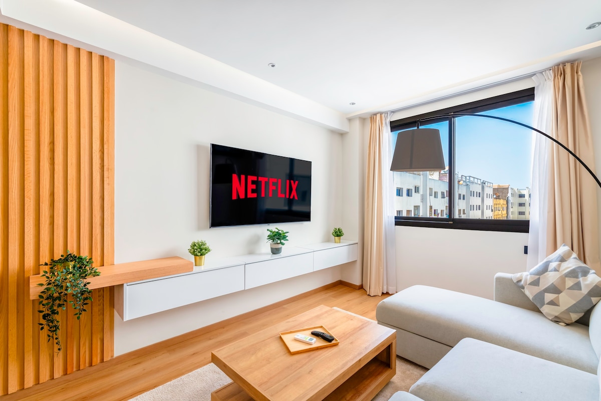 New, luxurious and relaxing 2 BR coastal apartment located in the heart of Rabat for travelers who value comfort & serenity, decorated with taste and attention to details with an astonishing seaview. Its strategic position allows you to easily walk to most city's attractions, restaurants and shops. Fully equipped APT, air conditioner in the main bedroom, High speed WIFI, Netflix, Coffee and literally the BEST Sunset VIEW in Rabat Book now, I have set all the conditions to make you feel at home!