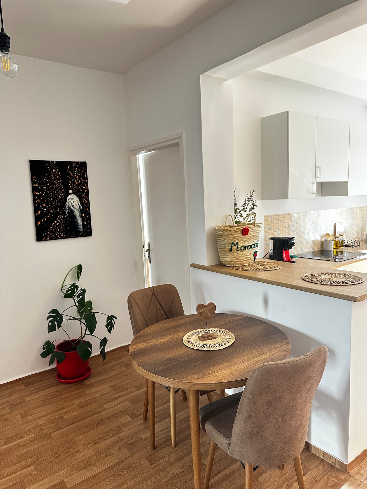 Experience a blend of comfort and elegance in this newly renovated 2-bedroom apt. Bright, spacious, and inviting, it offers a warm and stylish ambiance. Enjoy 24/7 security, private parking, and a lively neighbourhood filled with cafes, restaurants, grocery stores, and a nearby children's park. Unwind on the large terrace with stunning views. Stay entertained with Netflix and connected with high-speed WiFi. Ideal for families or anyone seeking a peaceful yet vibrant stay in the heart of Rabat.
