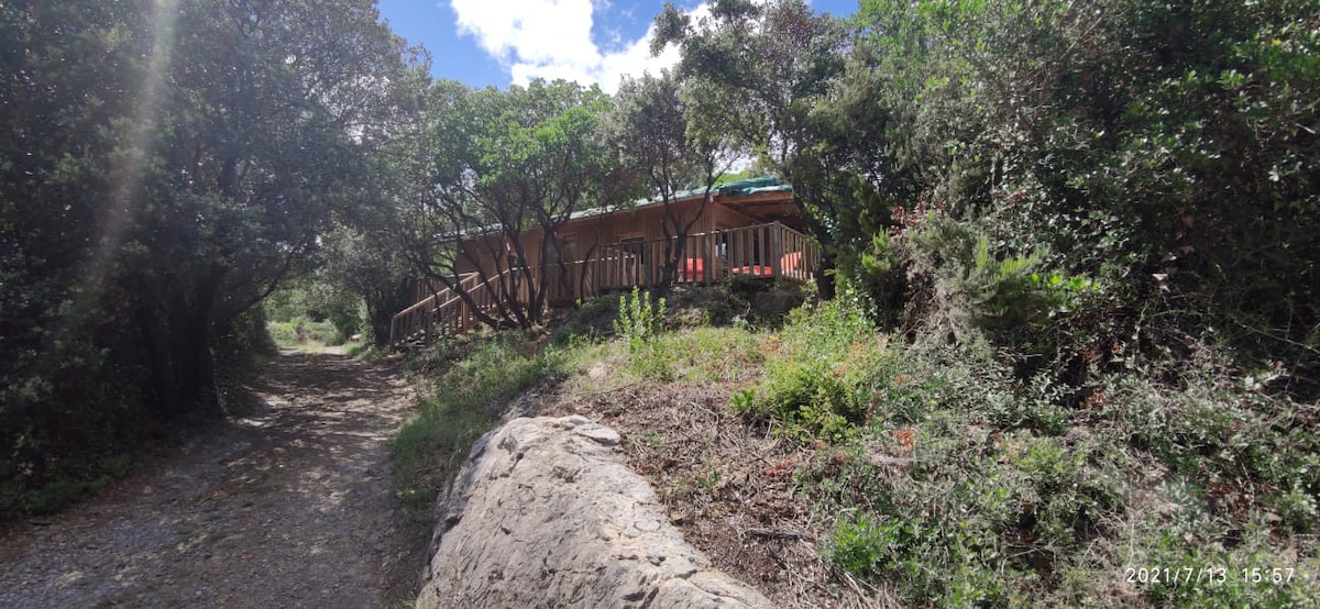 Ce chalet autonome en eau et électricité se situe sur un grand terrain de 1600 m2 arboré proche d'une ancienne et magnifique carrière. Il est constitué d'un salon très ajouré, avec un poêle, un canapé d'angle et un fauteuil convertibles, une cuisine équipée, une chambre et une salle de bain. Sur ce grand terrain vous pourrez disposer d'un barbecue, une table de ping-pong, deux hamacs. deux transats, trois tables avec la possibilité de planter des tentes. Poules, chats et chien en liberté.
