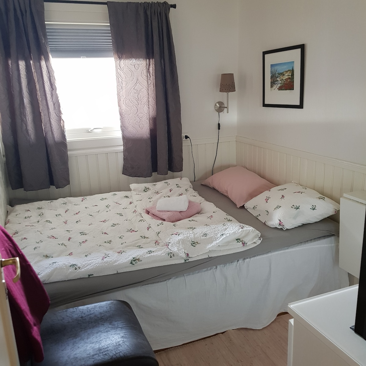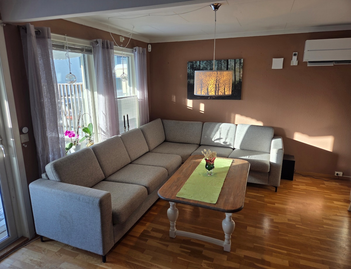 Koselig rekkehus over to etasjer. Her er god plass til flere familier som ønsker å feriere sammen eller de som ønsker god plass! To stuer, to bad, fire soverom, spiseplass både i stue og på kjøkken. Vi har to barnestoler og en babystol tilgjengelig. Sengeplass til 8 samt to madrasser som kan legges på gulv og en reiseseng til barn opptil to år (vi har ikke dyne til denne).