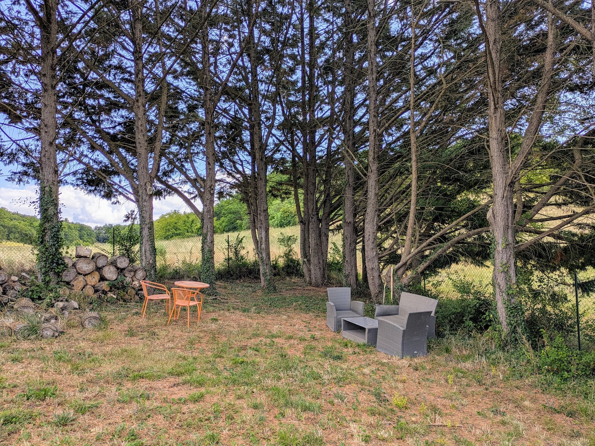 Evadez vous à la campagne dans ce logement spacieux et serein. Maison de maître du seizième siècle, nichée auprès d'un bois. Les écureuils, oiseaux animent le bois et nul autre bruit, loin des nuisances de la ville. Logement idéal pour une grande famille et/ou un groupe d'amis, pour se ressourcer dans la nature. C'est une maison de caractère, traditionnelle dans cette région et chargée d'histoire. Vue imprenable sur une des vallées du pays de serre, à la frontière du Quercy et Agenais.