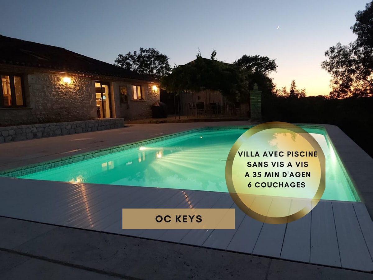 Villa située entre Bordeaux et Toulouse, à 8km d'Agen. En compagne Lot et Garonnaise et proche du Parc Walibi, notre villa individuelle (180m2) vous assure le calme et la tranquillité à partager en famille ou entre amis. Environnement proches : vacances vertes, canal latéral à la Garonne aménagé, cyclisme, nautisme, randonnée, pêche, pont canal, écluses. Mais aussi piscine olympique, lac, baignade, loisirs, cours de tennis au village, parcours accrobranche et thermes ludiques (Casteljaloux).