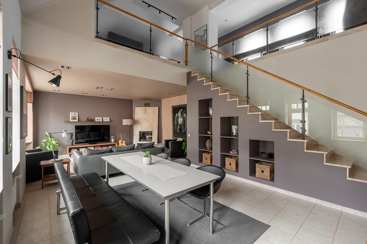 Contemporary and spacious two-story apartment on the top floor with high ceilings, plenty of daylight, and a large terrace. The apartment is located in the Art Nouveau District, a prestigious and affluent neighborhood just a 10-minute walk from the Old Town, known for its architecture and selection of restaurants and bars. You'll love the apartment's space, relaxing atmosphere, large terrace, fully equipped kitchen, dining area, and living room. Perfect for unwinding after exploring the city.