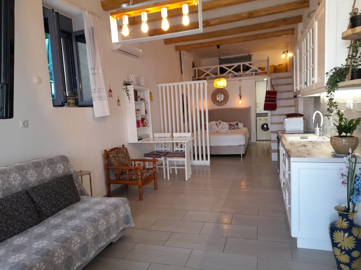 This beautiful and traditional cozy house it is made with love and respect for guests who want a special and cozy stay.Located in the traditional settlement in POROS .Offers a view of the port the island and the traditional settlement Brand new and fully renovated.400 meters from the port also close to the beach.