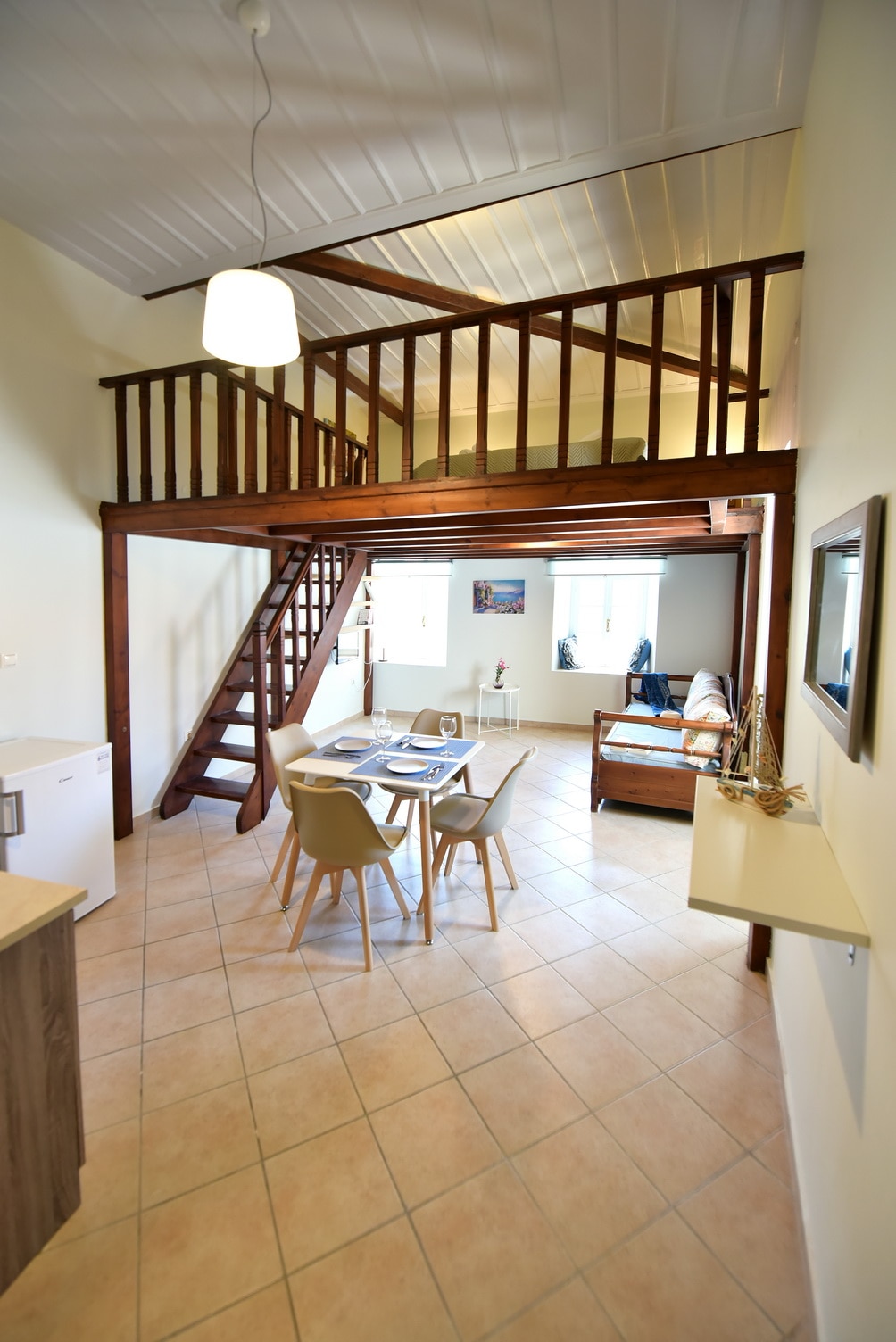 Welcome to Ira Suite A spacious and charming private suite within Casa Historica, ideal for couples or small families who love charm, calm, and local village life.. Ira includes a private bedroom, an ensuite bathroom, a full kitchen, and a living space with dining area and a sofa bed, plus access to the beautiful shared courtyard. Located on a quiet square beside a small church, just a 5-minute walk to the port, restaurants, and swimming spots.