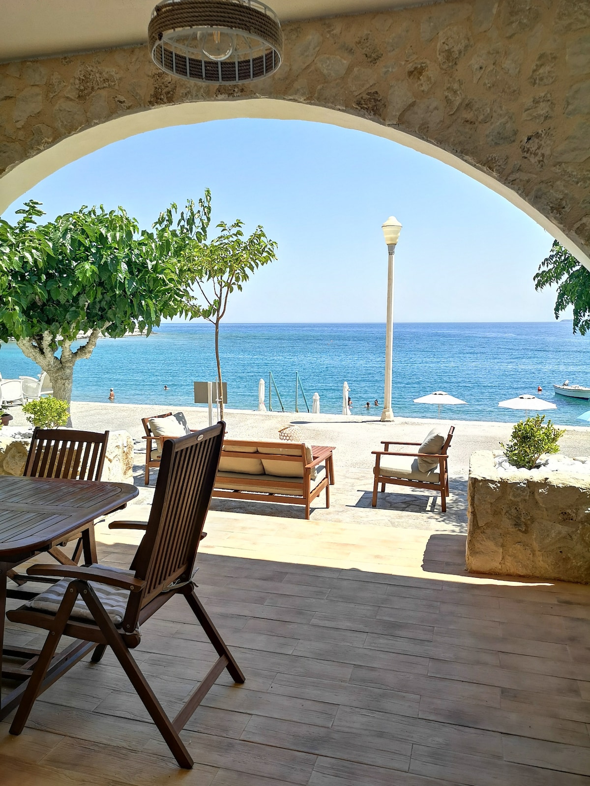 Τhe apartment is located just 10 steps away from the sea and a few meters away from all restaurants and other shops. This apartment has 2 floors. On the ground floor you find the fully equipped kitchen. The bedrooms are located on the first floor and are accessed via an internal staircase. Both bedrooms have double beds and air conditioning. The master bedroom has a private balcony overlooking the sea. Also, on the first floor there is a bathroom with a shower.