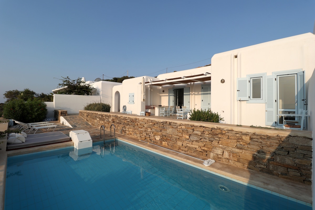 Villa Arismari is located on a serene hillside, surrounded by natural boulders, overlooking the beautiful coast of Orkos. We have a breathtaking panoramic view of the Aegean Sea and our neighboring island of Paros. We are situated between the main beach and smaller bays of Orkos. While enjoying the view that Villa Arismari offers prepare to take your most incredible selfies . Villa Arismari is a beautifully designed villa of Cycladic minimal architecture.