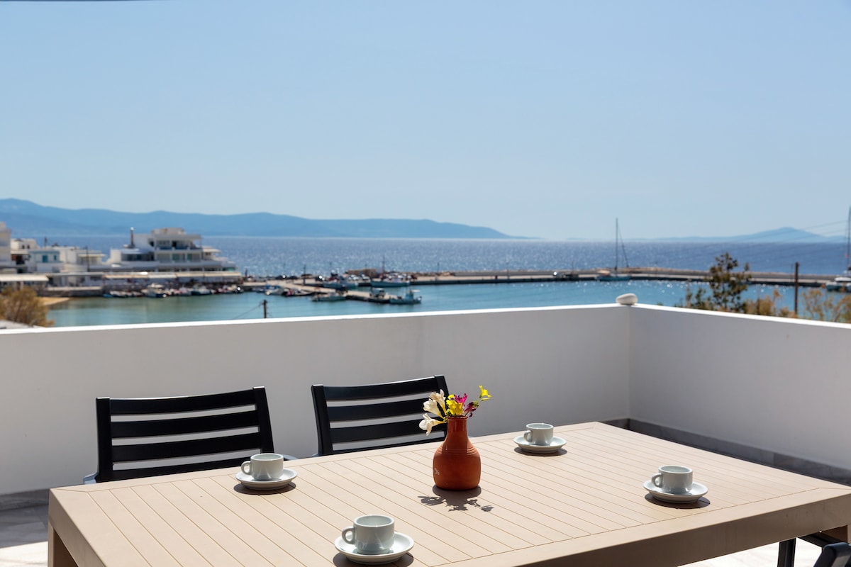 Amazing Location! You will be staying in the heart of Naxos town in a recently fully renovated (2022) apartment, amongst vibrant streets filled with cafes, boutique stores, bars, a groceries & supermarket, a pharmacy & a bank, being at the same time only a short walk away from St George's beach. To top that off, the apartment has a spacious veranda, looking out on Naxos town main streets The apartment is ideally situated for those arriving on the island by ferry