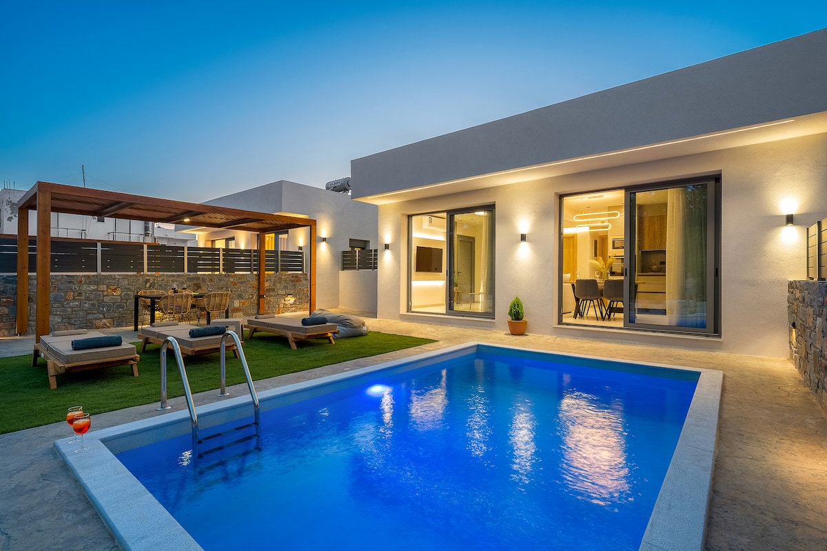 Villa Diamond was built in 2020. We have selected modern furniture and amenities that will make you feel like home with luxury. We have also a pool heating system for the colder months. An extra charge will apply. Fast WIFI ideal for a home office . The view is breath-taking, overlooking the ocean & the mountain ranges of Psiloritis. It is a 2-minute walk to the village where you'll find a bakery, restaurants, cafes, tavernas & a mini market that supplies everything.