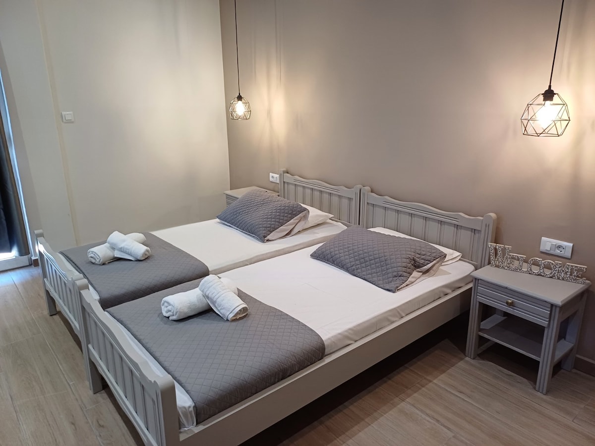 Double bedded room of 16 squad meters that can accommodate up to 3 persons (2 adults & 1 infant < 2 y.o.). The room is situated to the first floor of the building, has a window to the front side of the hotel with alley and old town view, and a queen sized double bed. The room includes fridge, a/c, wc, shower and free wi-fi. You can see the other Katerina Traditional Rooms in these links: https://www.airbnb.gr/rooms/3519711 https://www.airbnb.gr/rooms/4959677 https://www.airbnb.gr/rooms/17010151