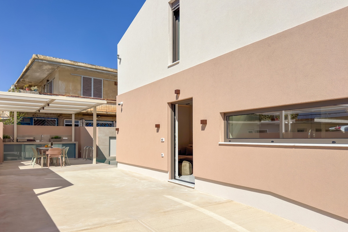 Villa Theasis II is a brand new 4-bedroom Villa with a private pool and five bathrooms, 300 meters from the lovely sandy beach of Agia Marina, where a few beach bars and many seaside restaurants can be found. Many shops, restaurants, taverns and cafes are easily accessible on foot. There is a tavern right across the street, and a supermarket at 250 meters away. The picturesque town of Chania is located 9 km away.