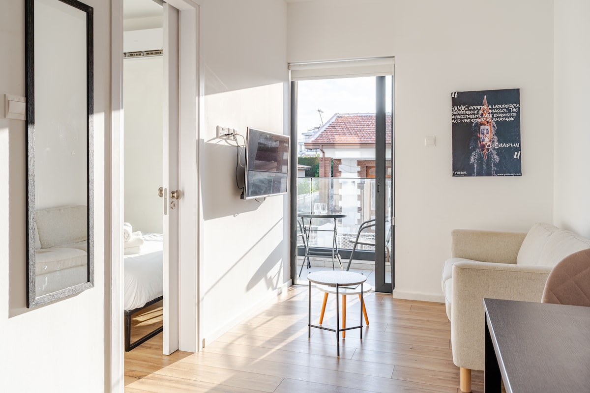Enjoy the elegance of a colorful space while staying in this modern flat next to Trilogy. Beautifully decorated and featuring: - Balcony with first line view to the sea - Smart TVs - Black out curtains - AC in every room - Stylish furniture - Unique lighting design Enjoy a unique seaside experience at this centrally-located apartment just 50 meters from the beach. With multiple cafes, restaurants, bars, seaside cycling and walking paths on your doorstep, this gem has something for every taste!