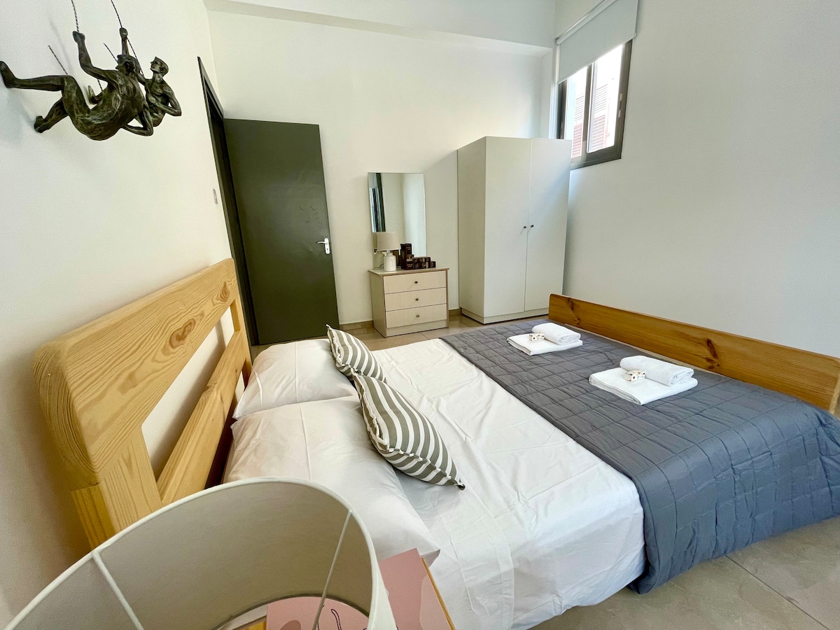 Located in the heart of Nicosia, this flat offers unbeatable access to the city’s top attractions. Just steps from Ledra and Onasagorou Streets, you’ll be surrounded by cafes, shops, museums, historic sites, and vibrant culture. With restaurants, public transport, and the crossing point to North Nicosia all nearby, everything you need is right at your doorstep. The flat is 2 bedrooms with double beds each , and there’s a sofa bed in the living room for extra 2 guests.