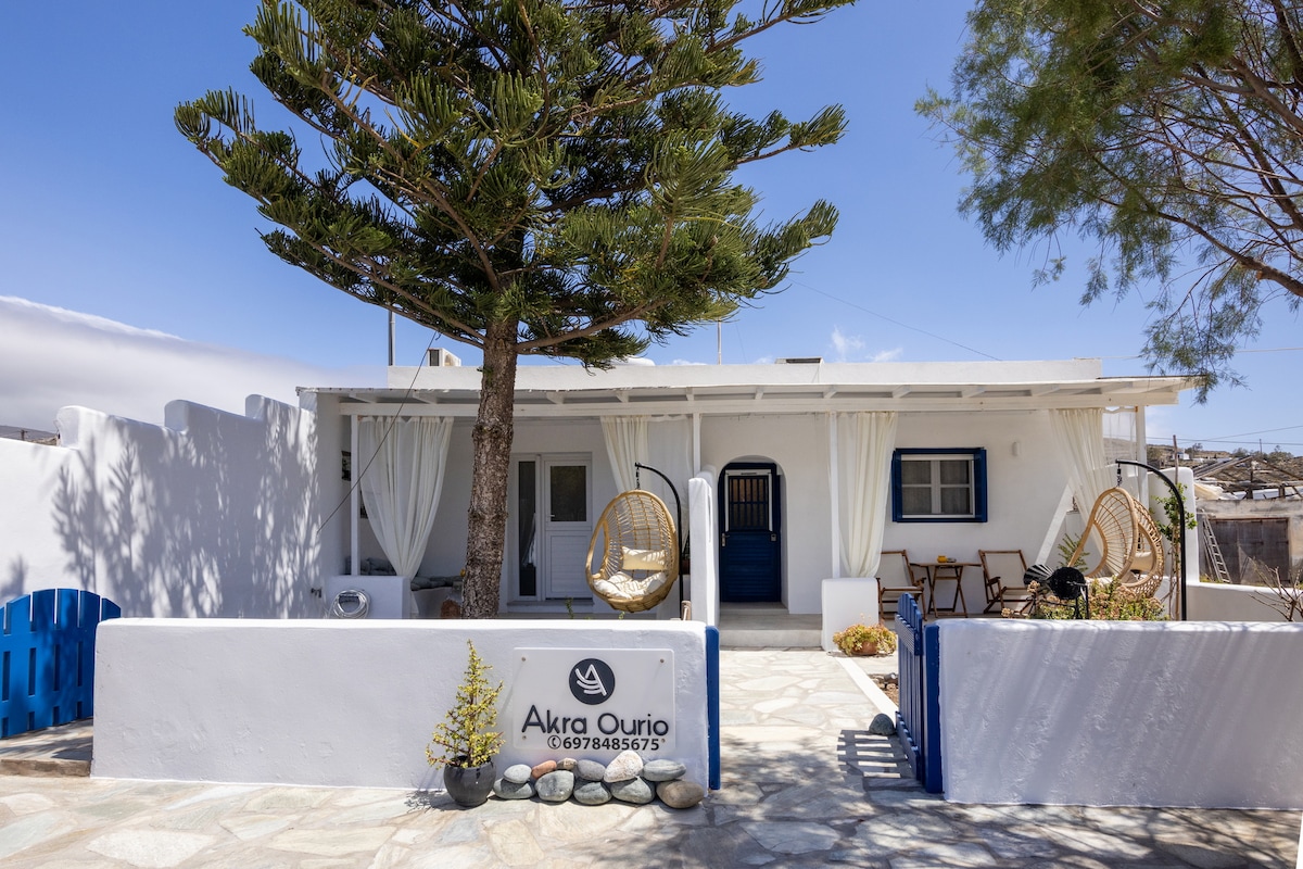 Amazing house on the beach of Apigania, unique sunset, clear waters, you can feel the nature, feel the wind of Cyclades as on a sailing ship, smell the thyme and the sage. Μinimal decoration with touches of authentic traditional objects. Big terrasse in front of the see, private acces to the see, private parking. Providing breakfast with local products. Personalized services on request.