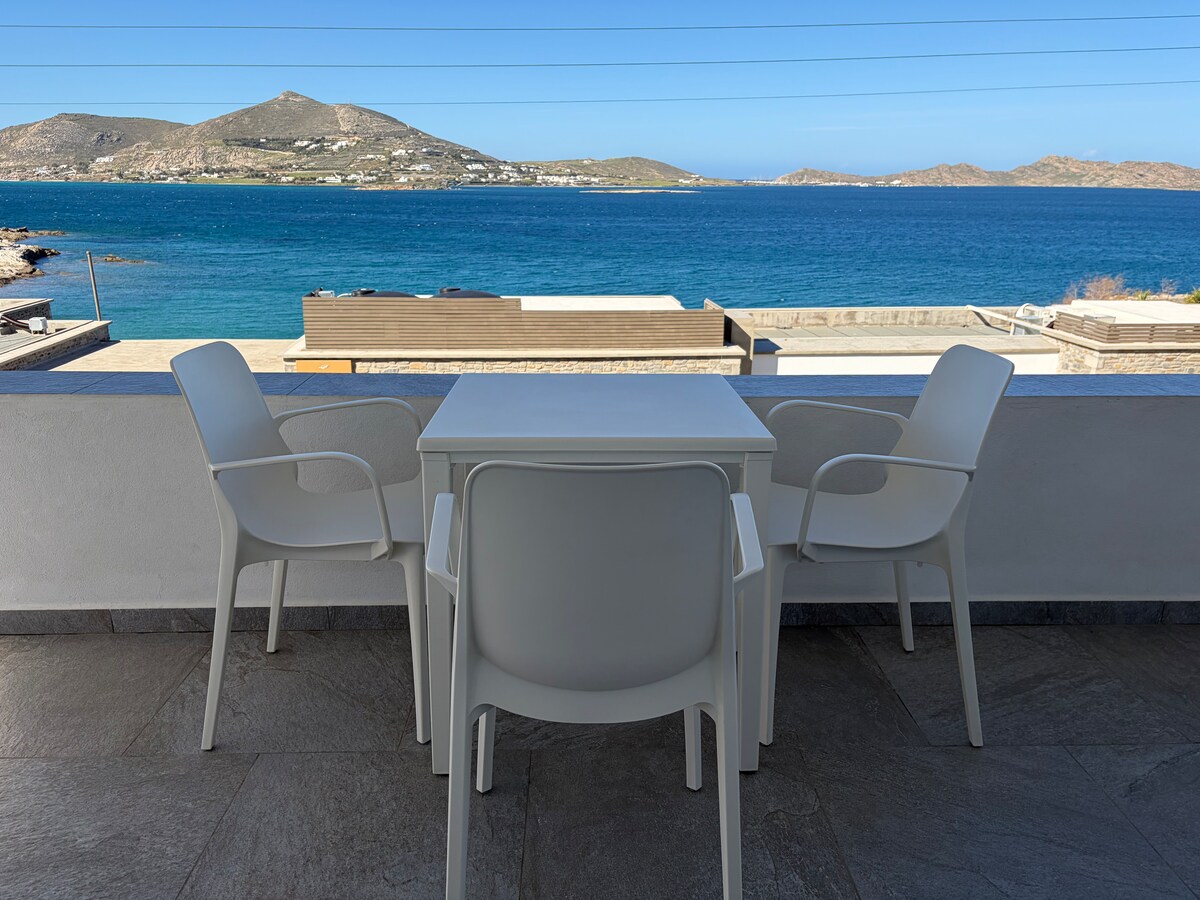 A spacious studio with sea views and a private hot tub, just steps from the beach. Flat Poseidon, part of Enosis Apartments, is located at Agia Anna of Naxos, steps from the long sandy beach and the crystal clear blue waters. The studio offers a generous interior layout and a private balcony with a sea view and a private hot tub, combining comfort and outdoor living. Designed in traditional Cycladic style, it is an ideal choice for guests who value space, privacy, and easy access to the beach.