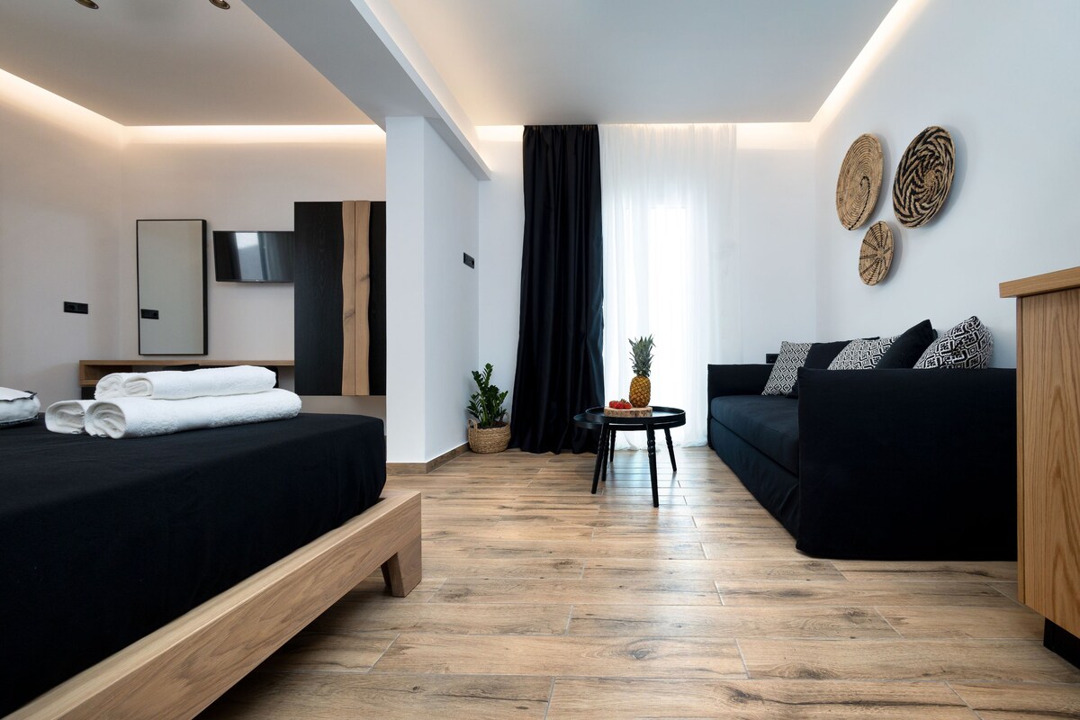Decorated in light shades and elegantly furnished our beautifully decorated Smirida Suite provides well-appointed accommodation, can accommodate up to 2 persons. Meticulous attention to detail ensures that families enjoy and plan their daily schedules in a luxurious homely environment.