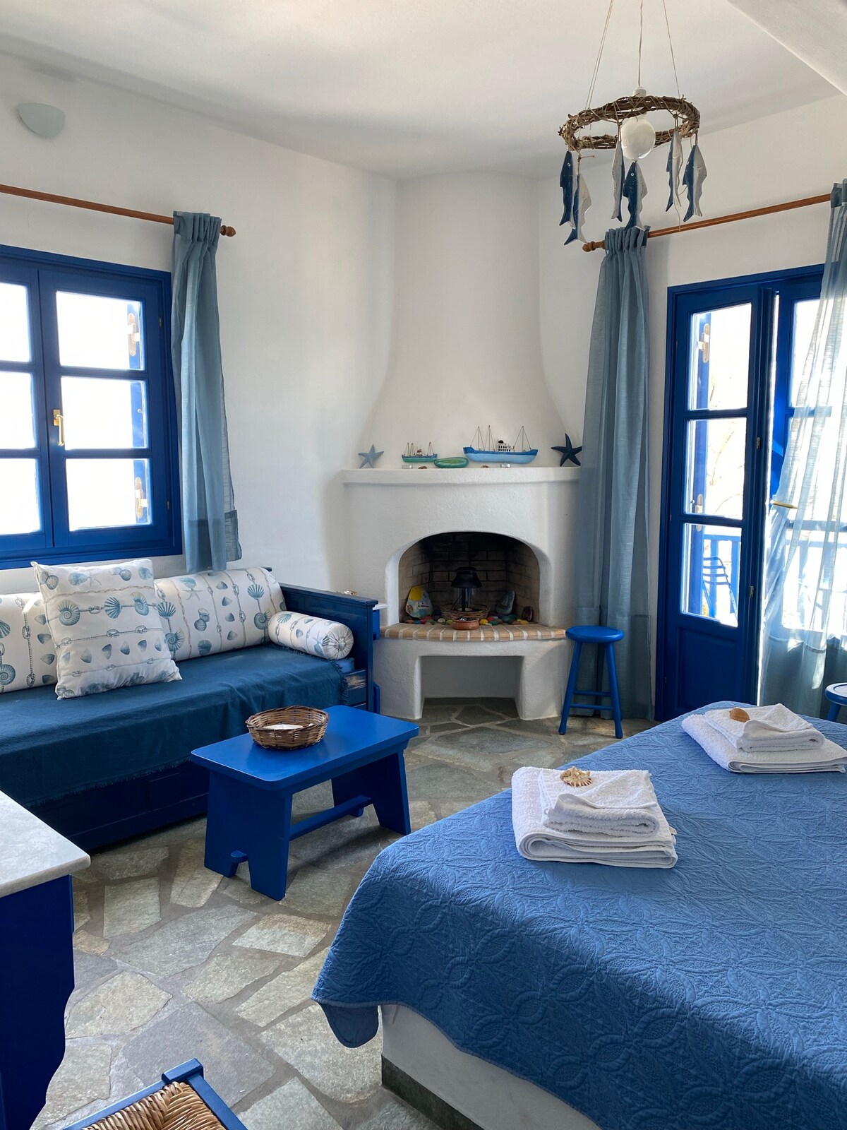 A unique aesthetic apartment with a beautiful private patio and lots of art touches, located in a picturesque neighbourhood in the heart of Naxos Town that can host up to 5 guests. Located 10' on foot from the Port, 1'-2' from the Market and other places of interest (castle, museums, etc) and entertainment (bars, restaurants, etc). If you travel without a car, no worries; the closest bus station to the most popular beaches and villages is at 3' on foot. Free parking space at 3' on foot!