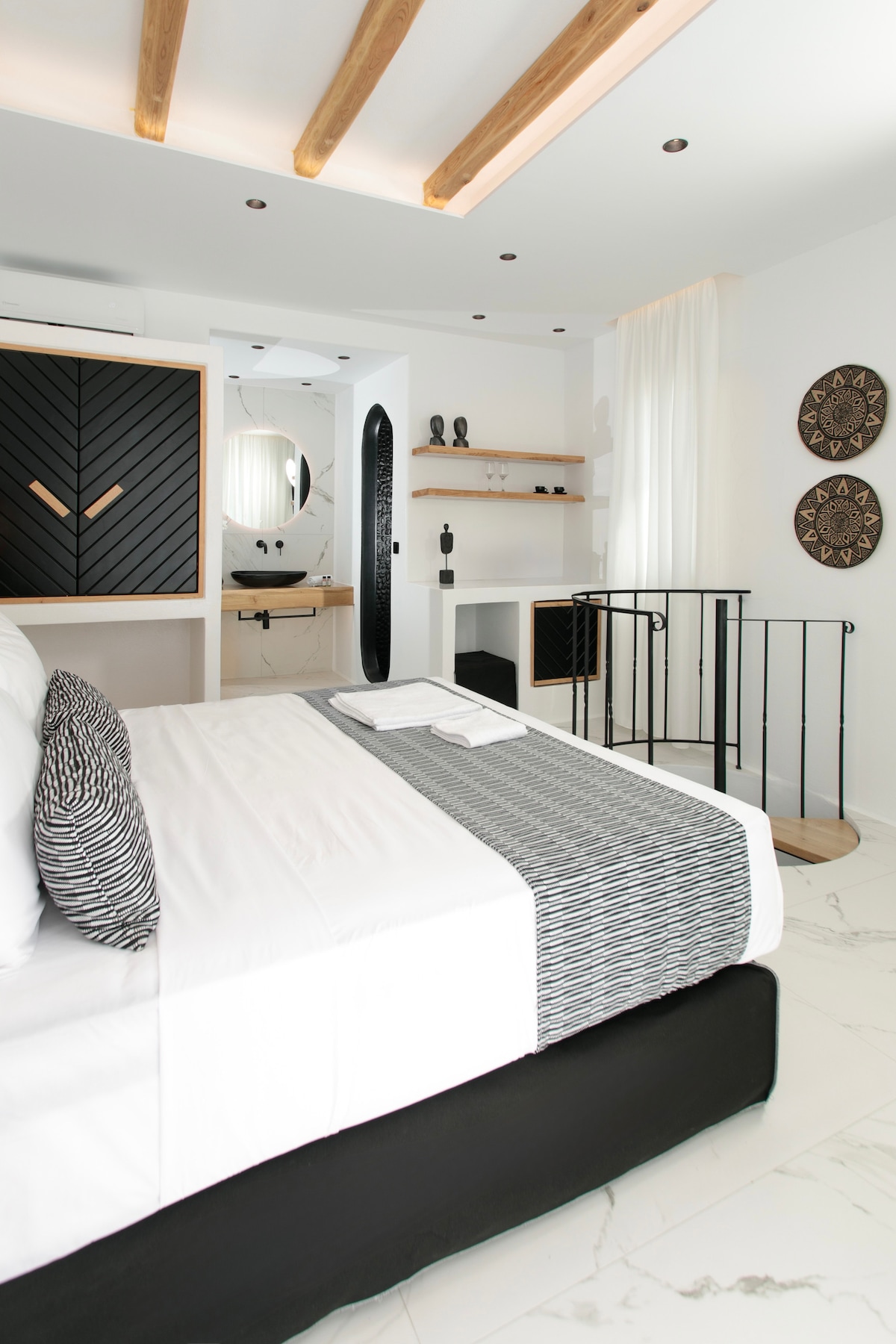 The Mythos Suite is a brand new, quiet, luxury suite with private Jacuzzi in the centre of Naxos, which can accommodate 2 people on the built-in queen size bed and 1 extra person on the sofa bed. Its comfort and luxury are harmoniously combined with the Cycladic architecture, providing guests with unique moments of relaxation and tranquility on the beautiful island.