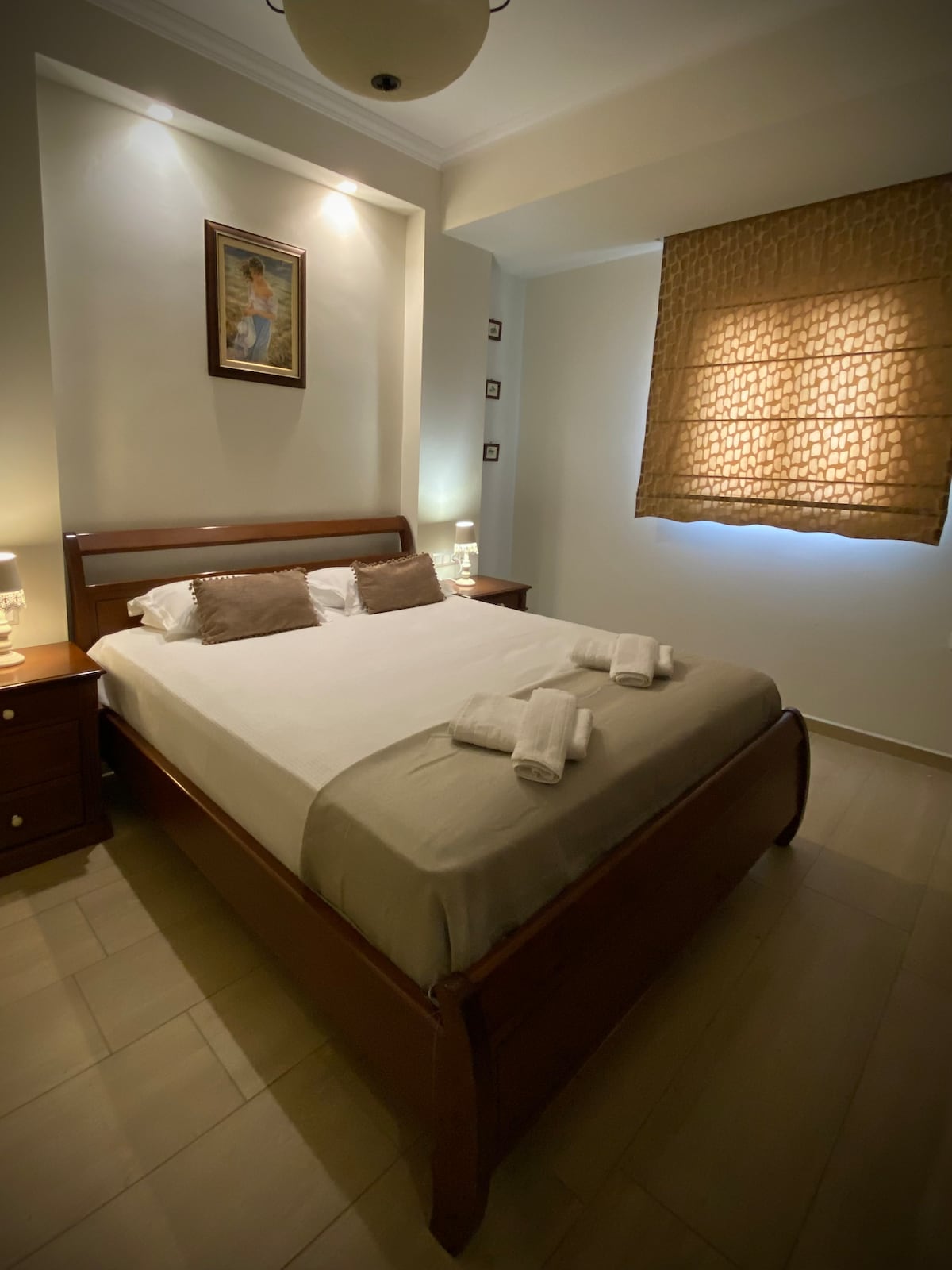 Apartment 80 sq.m. fully equipped for the summer months. Features: 2 bedrooms, 2 bathrooms, kitchen-, jacuzzi, wi-fi, washing machine, dishwasher, TV, heater . 200 meters from the beach of Saint George and 250 meters from the city center of Naxos.
