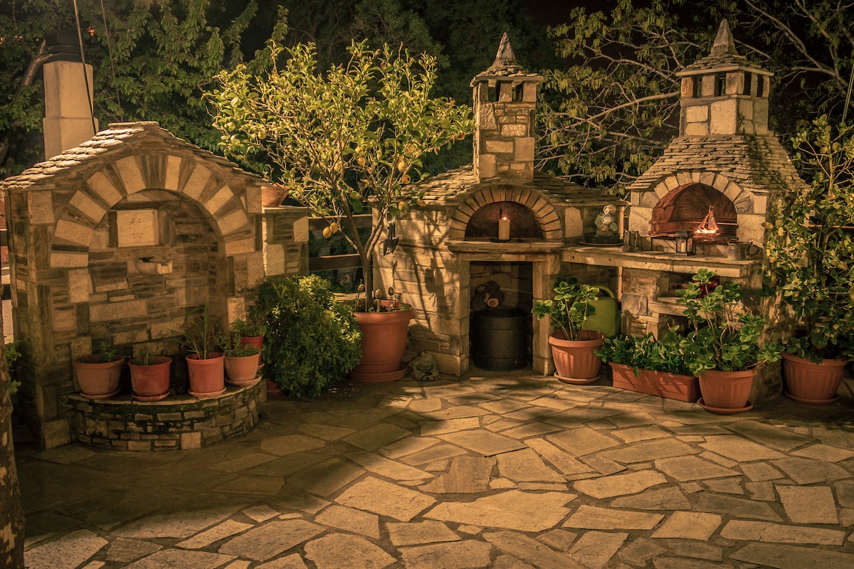 A country stone house gives you the opportunity of privacy and relaxation. Surrounded by olive trees and a breathtaking view of Aegean sea. Petit Stonehouse is five minutes drive from Mulopotanos Beach and five mins from Tsagarada village. Also available BBQ-Air cooler - fireplace-Tv-Hot water