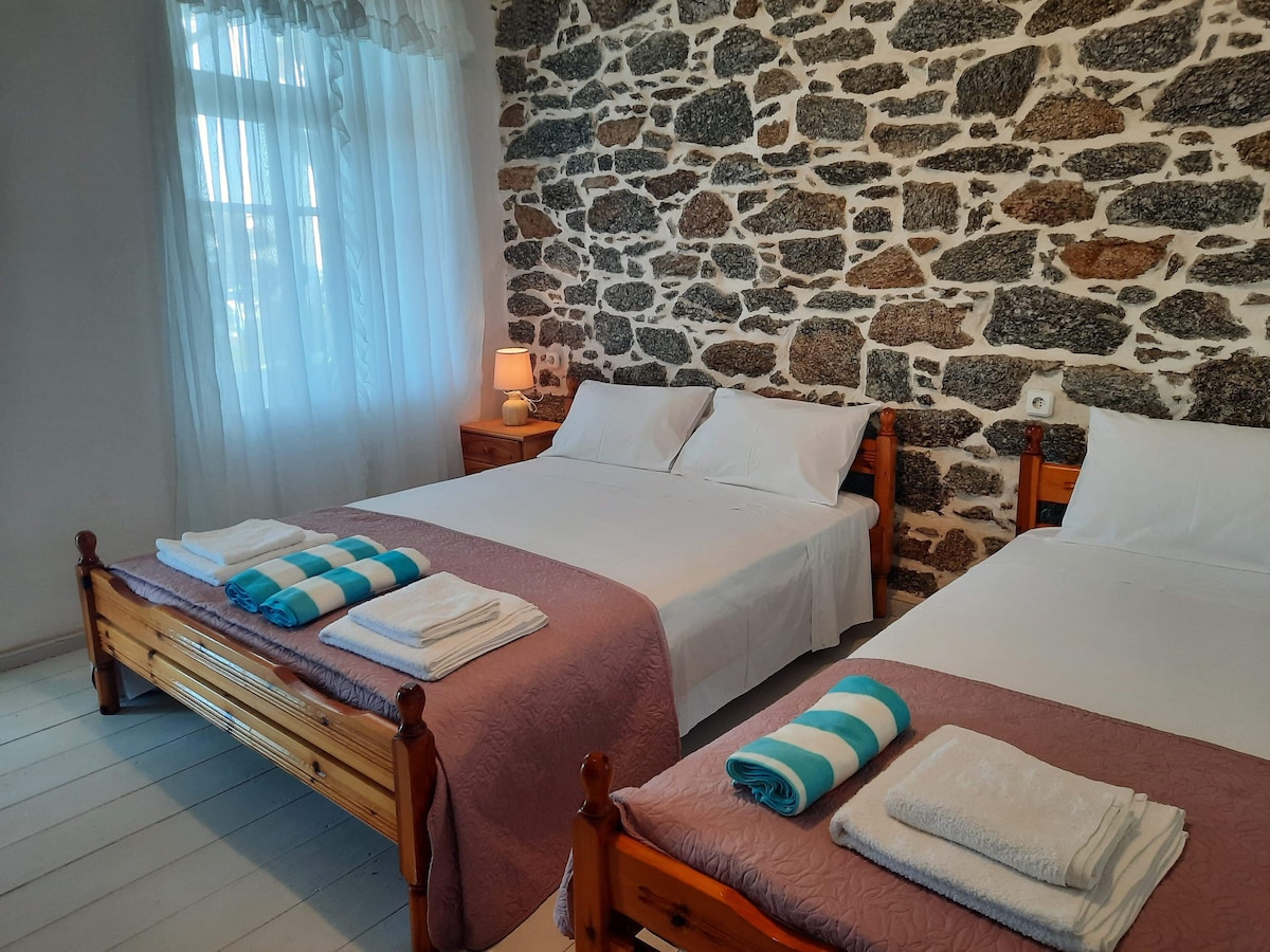 Situated at the center of Magganitis the most beautiful village of Ikaria.Ikaria is a bluezone area and also Covid free area.From my place you have an amazing view of Agean sea.The place is close to the beach Firodi.Also close to the grocery.50 m.from the tavern"Φεροη"and 1 kl from the famous beach Seychelles. Τhe apartment includes two bedrooms,two bathrooms(the one of the bedroom has ensuite bathroom)kitchen, living room,courtyard,and free parking space.