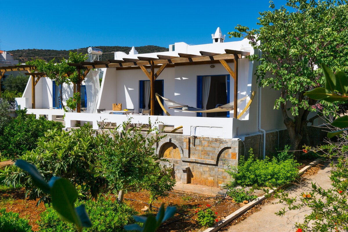 An ideal spot for individuals seeking peace and quiet close to the nature and for adventurers that want to explore central and east Crete. The villa occupies 95 sqr metres and is located next to the sandy beach of Ammoudara (400m). The city of Agios Nikolaos is 5 minute car drive away. It is suitable for couples and companies of individuals offering a beautiful sea view to the gulf of Mirabello. It is located within a garden full of lemon trees and olive groves overlooking the big blue.