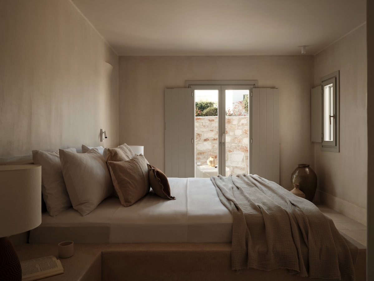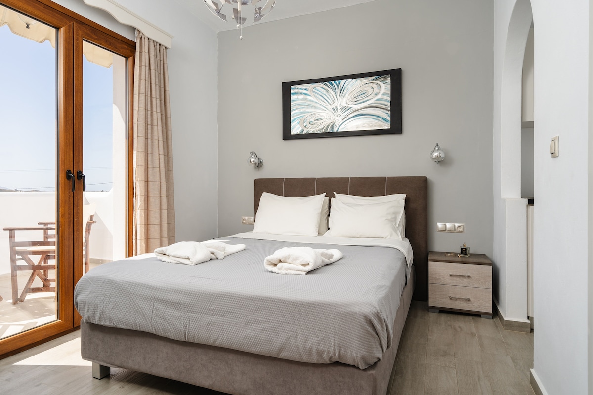 Relax at your balcony and enjoy the stunning sea and pool views. Naxos Contelibro upper floor superior room has a double bed, private bathroom and private balcony. Free Wi-Fi, daily cleaning service, and shared swimming pool. No detail is overlooked at this charming and upscale place to stay.