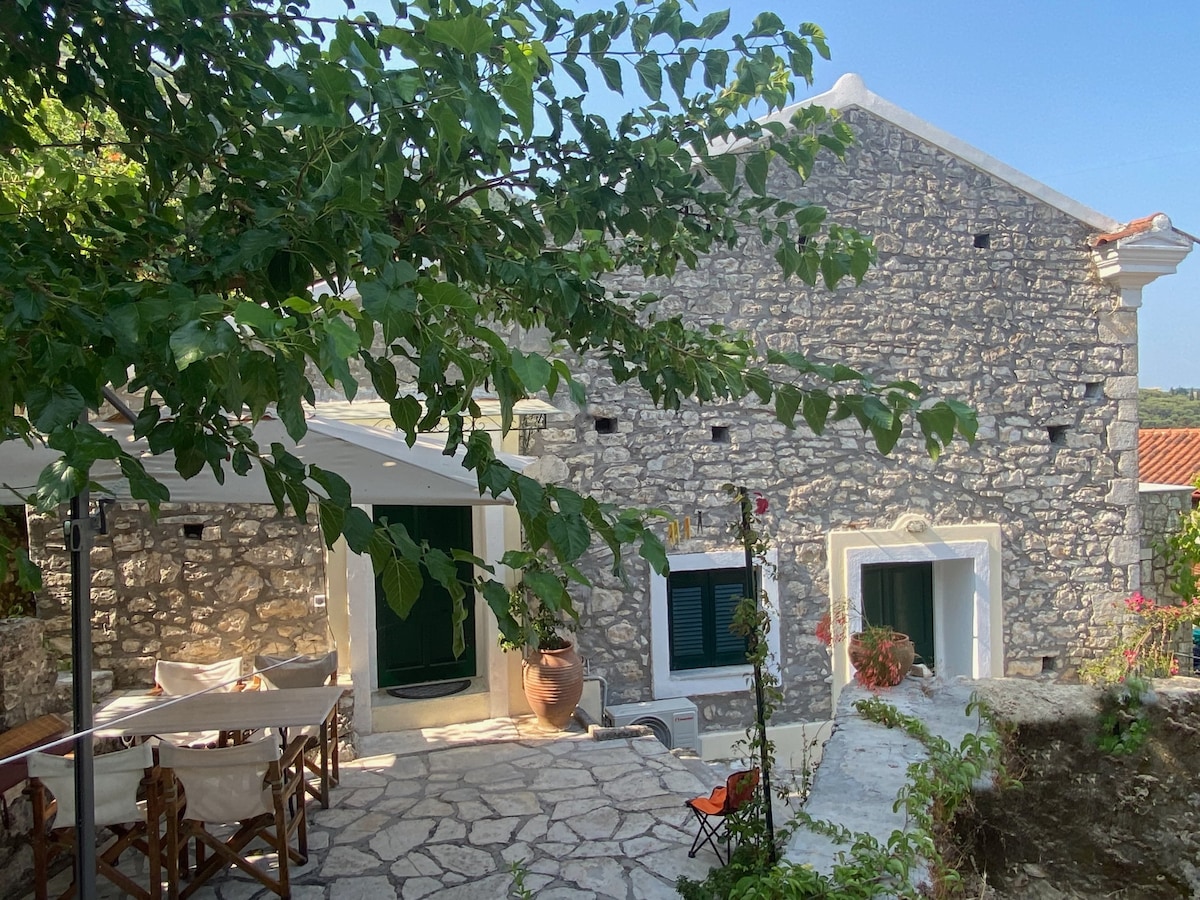 It's a comfortable studio away from crowds! Located exactly on mountain ⛰️, into the nature, in a relatively isolated spot of Strinilas, an almost remote, traditional village with the highest altitude in the island, in the foothills of Mountain Pantokrator, whice is the highest top of the island. In the front terrace guests can enjoy the sunset 🌄, with a panoramic view of the north coast of Corfu and Diapontia islands! From the garden you can enjoy the view of a valley 🌳and green mountains!