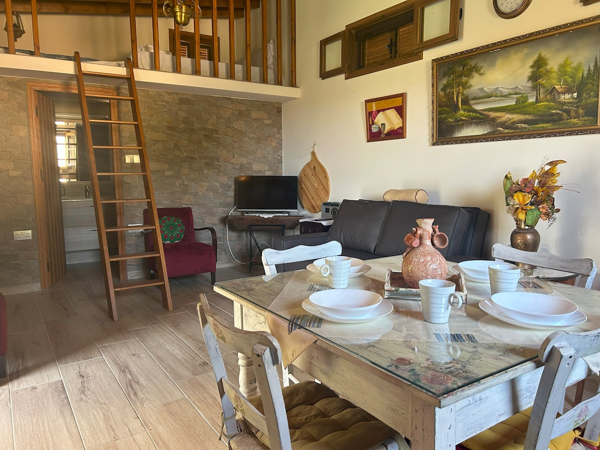 Are you stressed from work ? Do you want to escape from the city ? Gourri is your answer, 40 mins driving distance from Nicosia. You will experience peaceful mornings and beautiful nights. It’s a traditional guest house in the heart of Gourri. It’s near the church of Saint George and local restaurants. Gourri Mountains is the highlight, this is the view you will enjoy when you wake up in the morning from your room, from kitchen’s window when you cook and our balcony.