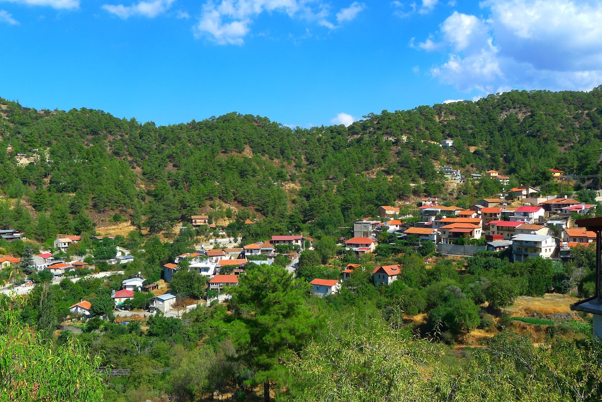 Cozy village home, right in the center of Kyperounta. Attached to a park, with beautiful views overlooking the range of Madari and Papoutsa mountains. The stairs lead up straight to the main square with almost everything the village has to provide right at your doorstep! Come and live like a local! ✔ Essentials ✔ WiFi ✔ TV with Netflix ✔ Comfortable beds and pillows ✔ Huge play area for the children ✔ Cafes and amenities at your doorstep ✔ Amazing Views ✔ Large porch with ample outdoor space