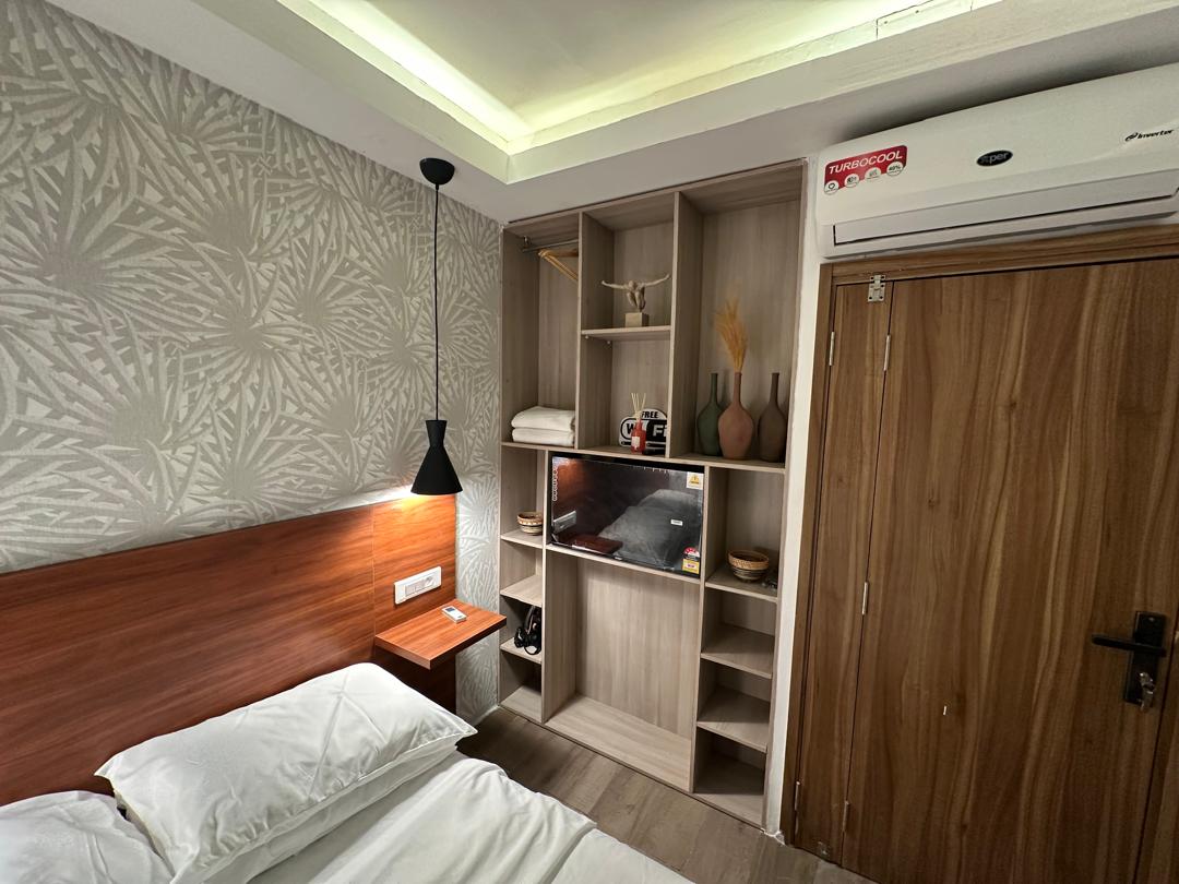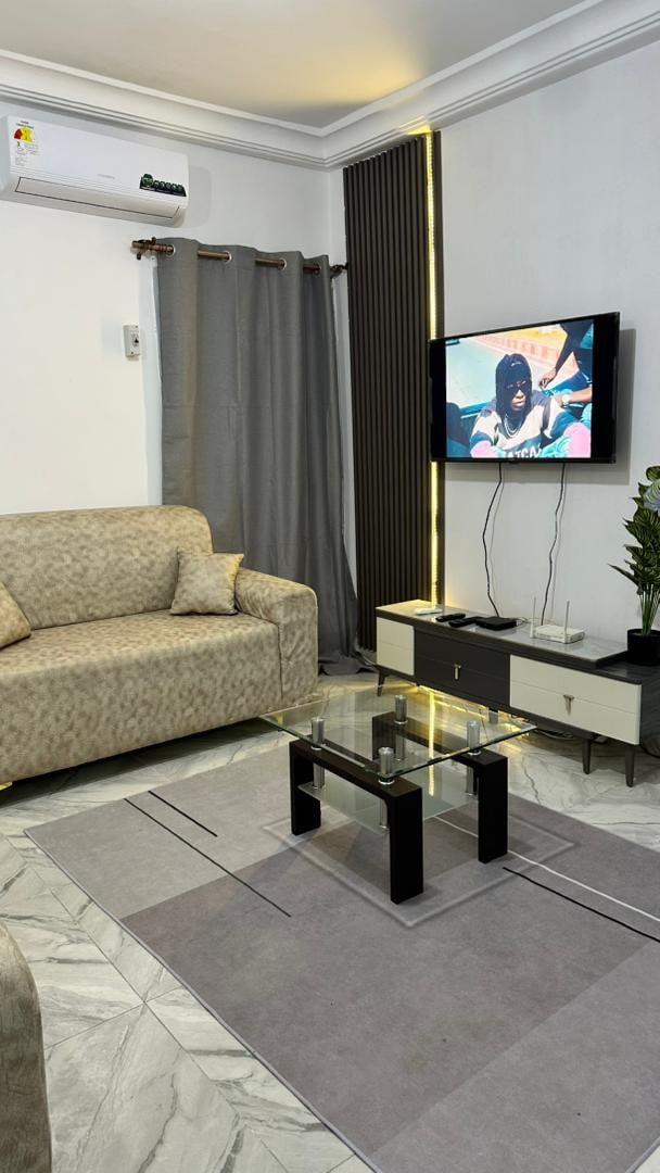 Nous vous accueillons dans notre appartement moderne au cœur du plateau d'Abidjan. Parfaitement situé à 400 mètres de l'hôtel Ibis plateau et en face du siège de la Banque Africaine de Développement (BAD), il est idéal pour les voyageurs d'affaires et les coupes. Il est à proximité des restaurants et des lieux de divertissement. Il est constitué d’une chambre à lit king size, avec sa salle de bain privée et d'un coin repas équipé. De plus, vous disposerez de l’appartement dans son entièreté.