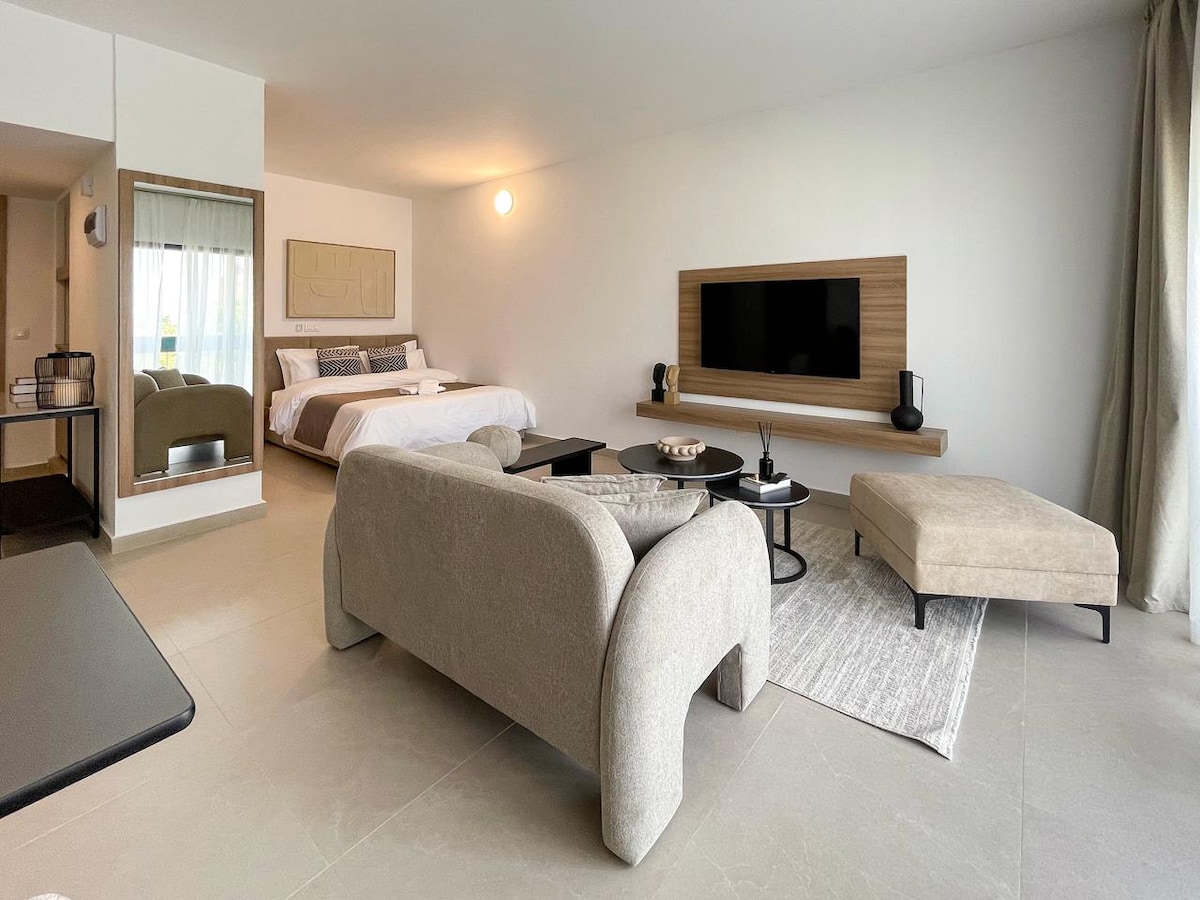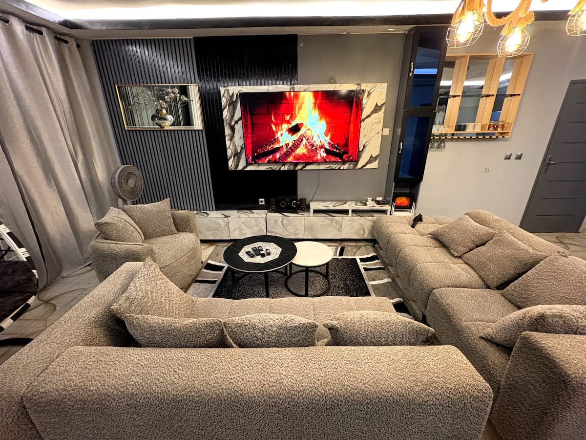 Salon spacieux avec 2 salles d'eau, 2 toilettes, cuisine équipée, 1 lit double, IPTV et Wi-Fi inclut ! Ce salon est parfait pour comme espace de détente et de travail. L’appartement offre : Deux salles d'eau pour plus de practicité. Une cuisine entièrement équipée pour préparer et savourer vos repas sur place. Wi-Fi haut débit inclus pour une connectivité optimale, de vos moments de détente et de divertissement. Un espace complet et confortable à ne pas manquer !